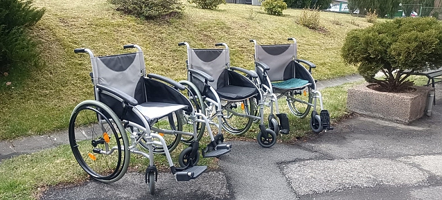 Mechanické invalidní vozíky zakoupené v roce 2021 pro klienty našeho Domova za finanční podpory města Beroun.